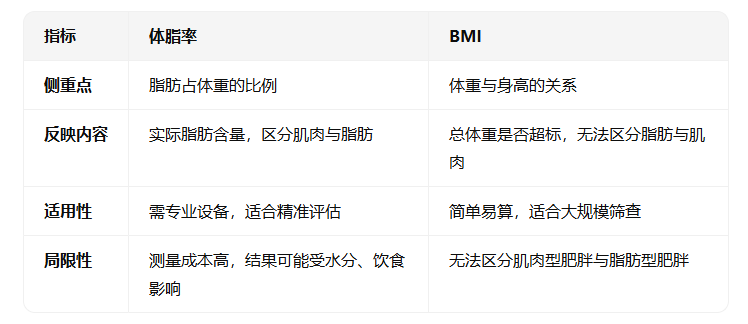 4、互补性:BMI是初步筛查工具,体脂率是更精准的健康指标。联合使用可更全面评估风险: